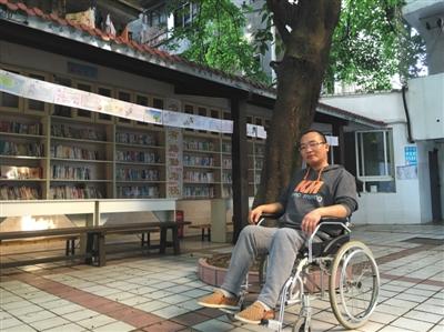 每节语文课前,班上力气最大的两位男生会来接他去教室,将轮椅放在简易的木台上,一位字迹工整的同学代他板书。