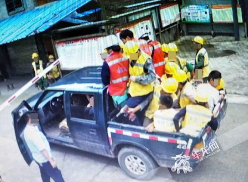 重庆一皮卡车秒变“大巴” 核载5人塞进18人(图