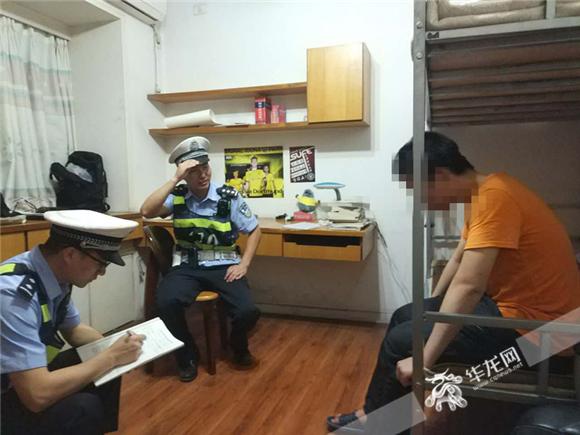 当事人小吴与民警。沙坪坝警方供图,华龙网发。