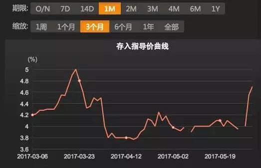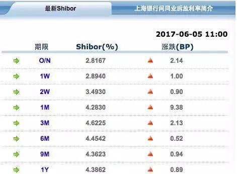 6月2日隔夜利率上涨14个bp,6月5日跨季资金涨势最猛,飙升了9.38个bp。