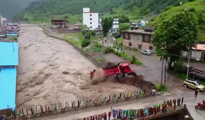 西藏江达县遭强降雨:大货车被冲走 整栋楼倒塌