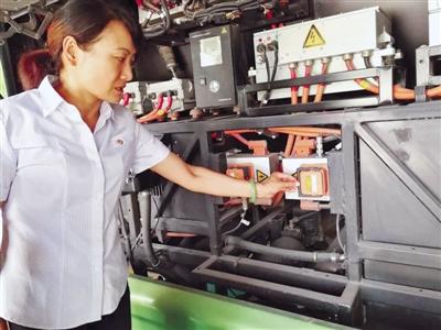 9时40分,商都路充换电站,一辆265路公交车驶来。驻守该充电站的公交员工石桂莹熟练地拿起电脑,打开公交车的后盖,测公交车身的温度。旁边的郑州供电公司员工,有条不紊地操作换电池程序,8分钟后,这台车换完开走,14路公交车随后开了进来。车长李师傅说:“平时一天换一次电瓶就行,现在太热,开着空调耗电量大,一天跑两趟换电瓶。”充换电站每天气温最高的时段是12时到15时,温度基本维持在45℃,最高近50℃。石桂莹时刻盯着充电机,以防跳闸,吃住都在场站。从2011年8月份开始入驻,她这一驻,就是6年。