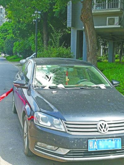 事情发生在昨天上午10时左右,被砸中的是一辆停在18栋楼下路边的黑色小轿车。据轿车女主人介绍,她住13楼,当时自己正在家靠着窗口休息。水泥块划过窗口,正好被她看到。她说,水泥块飞快地划过窗口,之后听到楼下噗通一声响。很快,丈夫下楼发现,自家的轿车被水泥块击中,前挡风玻璃被击穿后,水泥块砸进了副驾驶室。