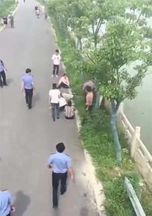 网传视频显示,一名民警在河中救援溺水者,另一民警和群众在岸边给予帮助,后溺水者被抬到岸边,其家人倒地痛哭。