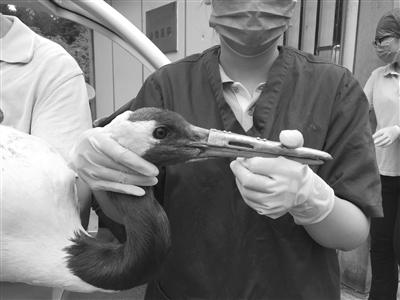 “断嘴”丹顶鹤换上3D打印“钛合金嘴”(图)