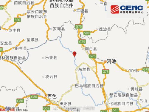 广西河池市南丹县发生4.0级地震 震源深度6千米