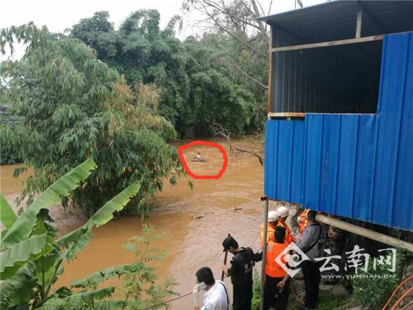 民警赶到现场时看到,事发地点位于弥勒南桥附近的甸溪河,因近日雨量充沛,甸溪河河水暴涨,洪流中有两名男子,其中年纪较大的老人被洪水冲到了河岸附近的一灌木丛中,另一男子位于河中竹丛处,两人均处于湍急的洪流中,稍有不慎均有可能被洪水卷走。民警立即展开救援,利用绳索成功将落水老人救起。
