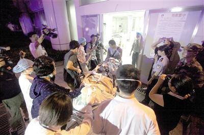 医务人员将杨婷推进急救室。