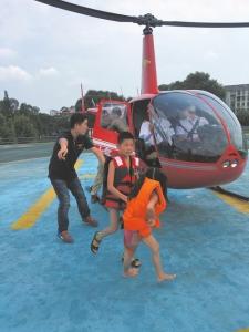 被困儿童被救援人员抱下直升机。图由受访者提供