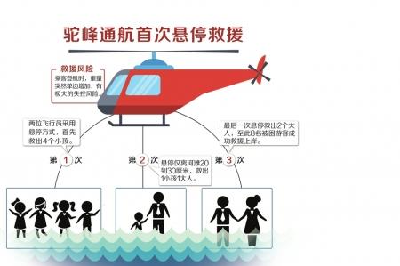 据了解,两位飞行员采用悬停方式,先后三次:第一次4个小孩,第二次一个小孩一个大人,第三次两个大人,将被困游客成功救援上岸。