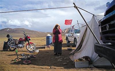 玛曲乡巡护队队长才嘎告诉记者,目前总共有140名巡护队员分布在2.64万平方公里的范围内进行巡逻,长江源地区禁止一切没有经过自治区同意的探险、登山、科考、勘察等人员进入。 才嘎说,高寒地区草场生态脆弱,为避免草场被车辆碾压,除设置关卡和警示牌外,现在乡里还建立了临时通行证登记制度。玛曲乡党委书记朗卡江村说,县里把生态保护作为对双联户长的绩效考核已有若干年。“我们一年四季,零下30摄氏度都坚守在岗位上。”