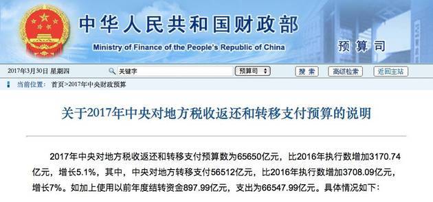 3月29日,记者从财政部网站了解到,在2017年中央财政预算中,“关于2017年中央对地方税收返还和转移支付预算的说明”中指出,基本养老金转移支付预算数为5666.17亿元,比2016年执行数增加691.47亿元,增长13.9%。主要是从2017年1月1日起,按照平均5.5%的幅度提高企业和机关事业单位退休人员养老金标准。此外,城乡居民基本养老保险基础养老金领取人数也有所增加。