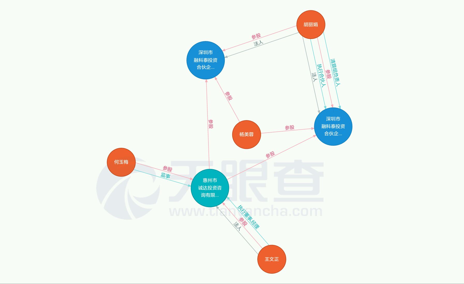 从名称情况来看,胡丽娟在资本领域的布局,大致可以四类,一类是“融科”系,除了上述两家,还有一家名为深圳融科泰投资合伙企业(有限合伙)的公司。该公司注册资本仅为30万元,除了胡丽娟之外,杨美蓉、惠州诚达投资咨询有限公司分别出资10万元,而后者的股东中,竟然也有一名股东名为何玉梅,出资额为10万元。而深圳融科信投资、融科信资本注册资本均为1000万元,均有胡丽娟控股。目前并无对外投资。