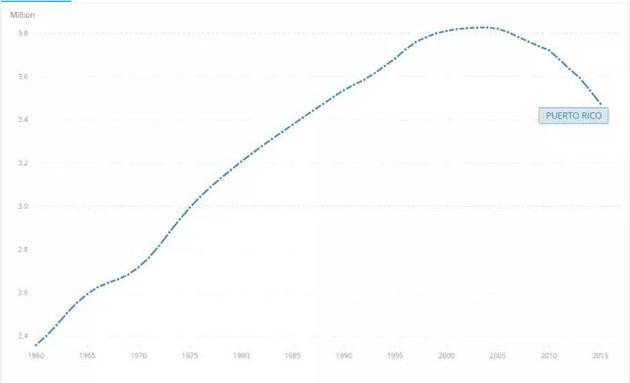 过去10年,这座岛屿的人口数量下降了35万。世界银行数据显示,截至2015年,波多黎各人口从峰值(21世纪初)的380万降至不到350万。更为严重的是,CNNMoney还发现平均每天都有一位医生离开这里,造成严重的医疗短缺,而波多黎各正面临寨卡病毒的威胁。