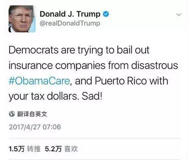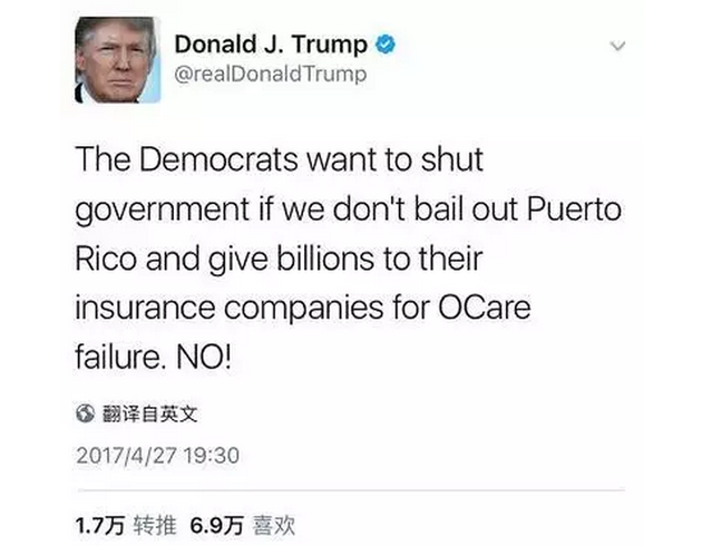 另一方面,早在去年竞选期间,特朗普就表示不会“救助”波多黎各。他最近发布的推文也在抨击奥巴马医保时,借题发挥重申了这一态度。
