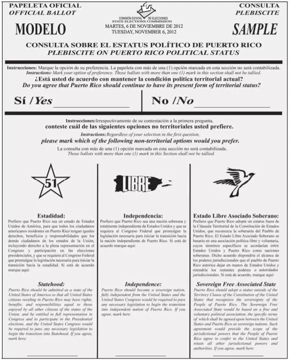 ▲2012年波多黎各公投时的投票用纸