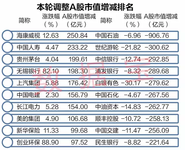 个股方面,4月10日以来中国石油市值缩水最多,900亿元位居首位;世纪游轮市值缩水300亿元位居次席;此外,中信银行、浦发银行、白银有色等7股市值缩水均超过250亿元。市值增长最多的是海康威视,期间市值增长251亿元居首;中国人寿增长233亿元位居次席。此外,贵州茅台、无锡银行等6股市值增长均超过百亿元。