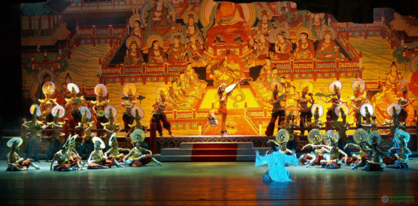 以丝绸之路和敦煌壁画为素材创作的舞剧《丝路花雨》