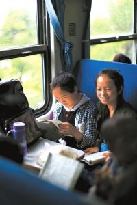5月14日,在慢火车上看书的学生。