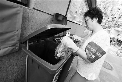 昨天,北青报记者来到新街口街道大乘巷教师楼小区,这是北京最早开展垃圾分类的居民小区。每天早上7点至9点,五名垃圾分类指导员会在这15组分类垃圾桶前来回转悠,指导居民准确投放分类垃圾,同时还要亲自下手,对投错桶的垃圾进行“二次分拣”。