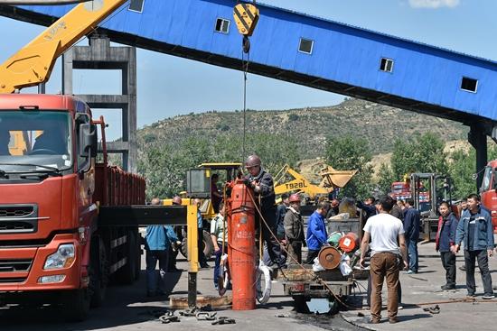 位于太原市清徐县的山西美锦集团东于煤矿井下发生透水事故,这是5月23日拍摄的事故救援现场。新华社记者 曹阳/摄