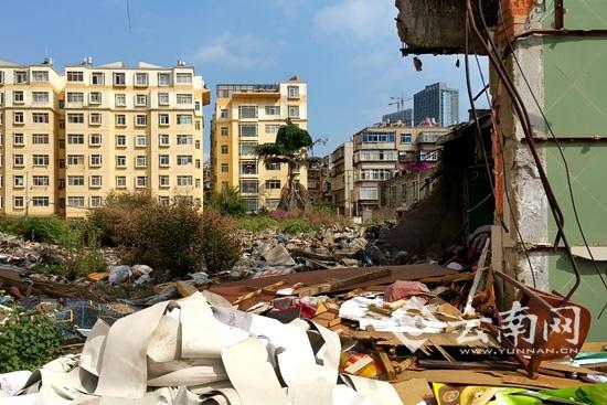 云南网讯近日,家住昆明市穿金路蓝色经典现代洋房的谭先生反映,他们家楼下有一块拆除了一半的烂尾地块,两年多了没人管,导致垃圾成堆,雨天臭味熏天……据了解,谭先生所说的这个地方就在穿金路152号,是原来的云南省商业机械厂……