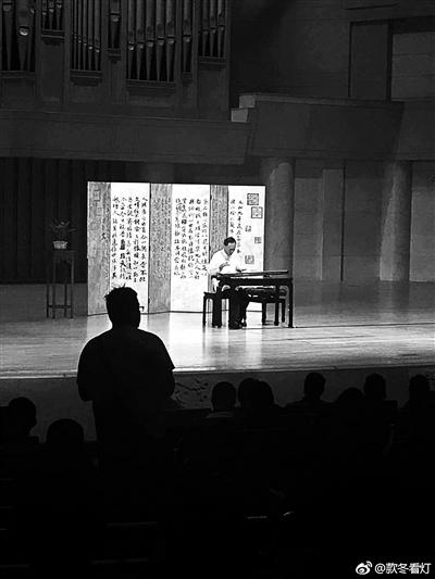 26日晚,杨女士告诉北青报记者,当晚她在北京中山公园音乐堂观看古琴演奏家姚公白的古琴音乐会。没想到下半场演出过程中,一名男观众出现在一楼观众席前排,站着用手机拍照,“拍照的时候,就有工作人员用激光笔提醒他,但他熟视无睹,继续拍照,还做了几次自拍的动作。”