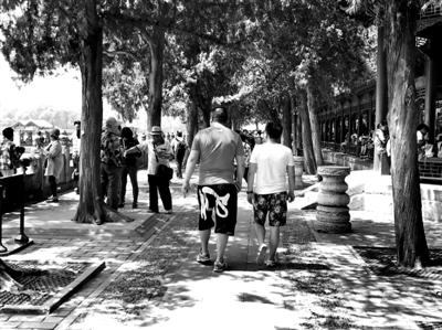 除了颐和园、北海、天坛等全面禁烟的公园也都存在保安无执法权的难题。天坛祈年殿东墙外的长廊内,很多中老年人在下棋、打牌,北青报记者看到有4、5个人若无其事地抽烟,地上散落多个烟头,最多的有7个烟头。“这些人都是附近的居民,经常聚集在这里,不少人都抽烟,劝阻他们有些当时虽然把烟掐了,但我们一走接着抽;还有些人就是不听,而且态度还特强硬,根本无法管理。”一名在长廊巡视的保安说,天坛的外地游客吸烟的不多,倒是附近居民成为主要的吸烟群体。
