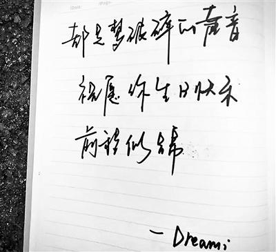 “周围经常有同学过生日,无非就是吃一顿大餐,出去唱个歌什么的,我觉得这样的庆祝方式太普通,20岁的生日是很特别的,代表了真正地长大,所以我想用特殊的方式来纪念,于是就想出了摆摊让陌生人写‘人生忠告’的方式。”杨冰倩告诉北京青年报记者。