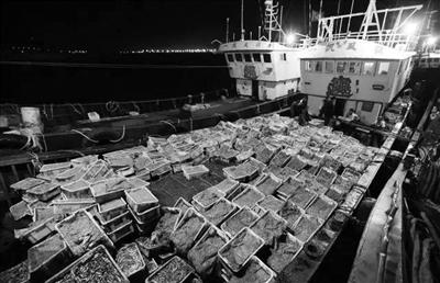 扬子晚报讯 (记者 薄云峰)6月2日晚,连云港海监维权执法基地里灯火通明,江苏省渔政监督总队直属支队执法人员正在清点被查扣的外省籍渔船非法捕捞渔获物,总数6800箱、14万公斤的鳀鱼和方氏云鳚、皮条鱼等在码头上堆积如山,触目惊心。被查扣的4艘各100多吨位的非法捕捞船已转押至连云港海监渔政执法基地。