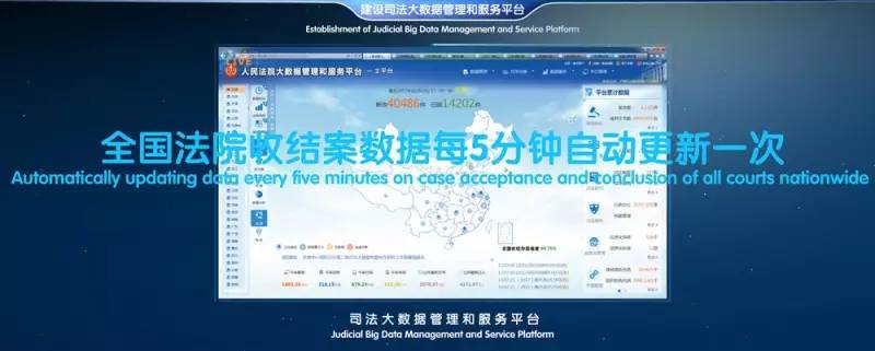 中国最高人民法院2014年建成大数据管理和服务平台,每5分钟自动更新一次全国法院收结案数据,日均汇聚 5至6万件案件数据,目前已经汇集1亿多件案件信息,成为全世界最大的审判信息资源库。平台可以提供任意法院、任意时间、任意类型案件的新收、旧存、已结、未结实时数据,为司法决策提供全面、及时、准确的司法大数据服务,为法官提供类案参考和量刑规范化支持,以及相关案例推荐、关联案件分析等大数据智能应用服务。同时,建立常态化大数据专题研究分析机制,及时为社会治理、宏观调控等提供职务犯罪、非法集资、民间借贷等方面的司法信息和分析报告。