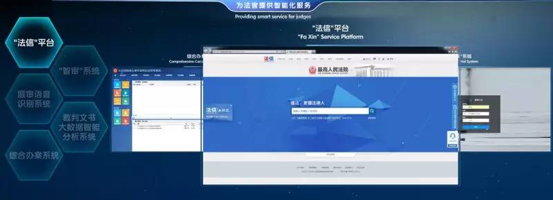 “法信”平台提供全面、便捷、智能化的检索、智能推送服务,满足法官在办案过程中对法律、案例、专业知识的精准化需求; “智审”系统将诉讼材料数据化、文档化、结构化,通过数据抽取和语义分析智能辅助法官快速生成各类法律文书; 庭审语音识别系统将庭审语音自动转化为文字,快速实现庭审的完整记录,大幅缩短庭审时间,语音识别正确率达到90%以上; 裁判文书大数据智能分析系统能够对裁判文书进行智能分析,发现人工评查不易发现的逻辑错误、诉讼请求遗漏、法律条文引用错误等问题,帮助法官提高裁判文书质量; 综合办案系统促进案件快速流转和审批,辅助法官随案同步生成电子卷宗,制作各类法律文书。这些系统的建立,为法官办案提供了极大便利,也为确保司法公正提供了有力的科技支撑。