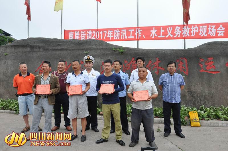 日前,宜宾市翠屏区南岸街道办事处(以下文中简称“南岸街道”)举行2017年防汛及水上义务救援现场会,并开展防溺水演练以及应急抢救培训。包括年救6人的渔民曾贵田在内的5名水上义务救护队员受到街道表彰和3000元等不同金额的奖励。