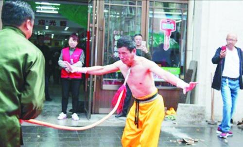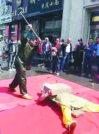 张玉建的表演引来了现场很多观众的惊呼。“那道具都是真的吗?这可都是电视剧里的情节呀!”有围观者发出疑问。“我当时就在现场,也挺怀疑的,特意上前摸了摸那些道具,辨别真伪,绝对真实。”一位向生活报记者提供视频的熟人介绍说。